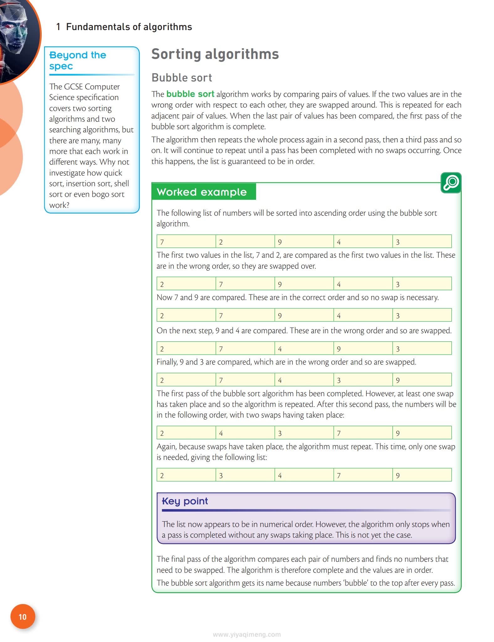 学习算法表示、分解(Decomposition)、抽象(Abstraction)、排序与搜索算法(Bubble Sort、Merge Sort、Linear & Binary Search)等核心概念。