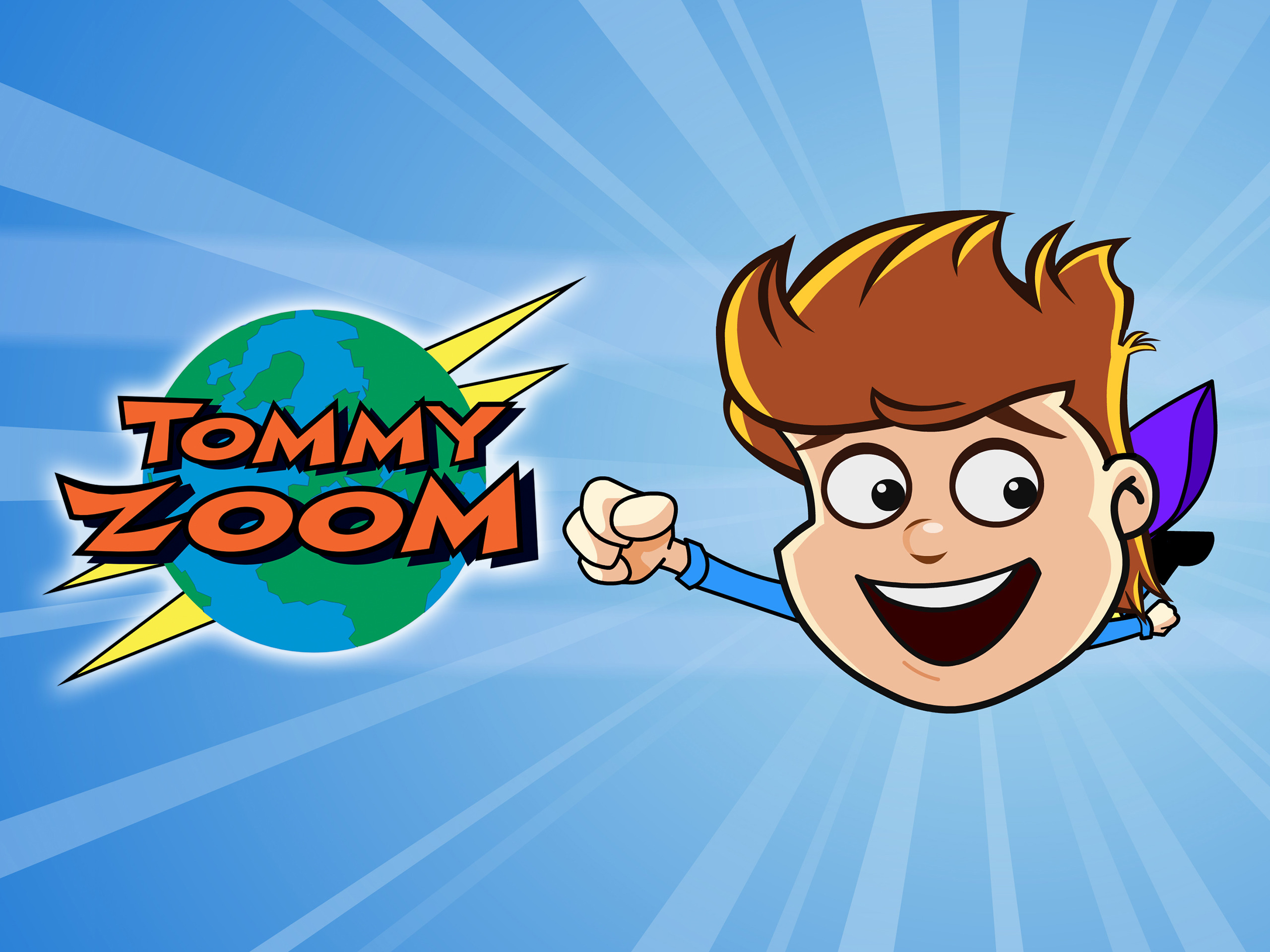 Tommy Zoom是个小男孩(一个小超级英雄,类似小超人)的名字,他常变身成为一个小超人,也有个披肩,胸前印着个大写“Z”,中文音译是“汤米·祖姆”,和他在一起的,还有他的小狗丹。平常的时候,男孩和小狗都是真实的,只要一变身,他们就变为动画里的人物,人物和动画相结合。